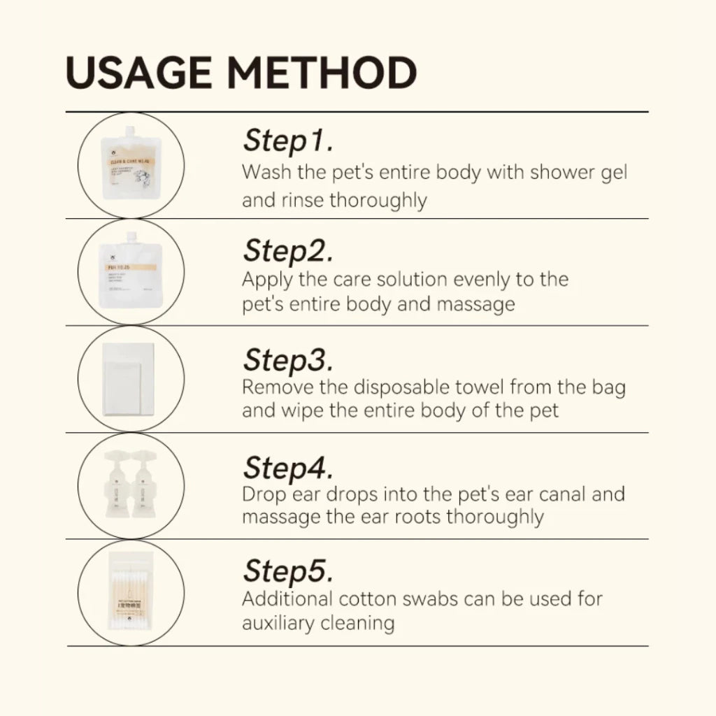 Don't worry about cleaning your Pet's, AMO PETRIC presents a cleaning package for your trip with your pet.
