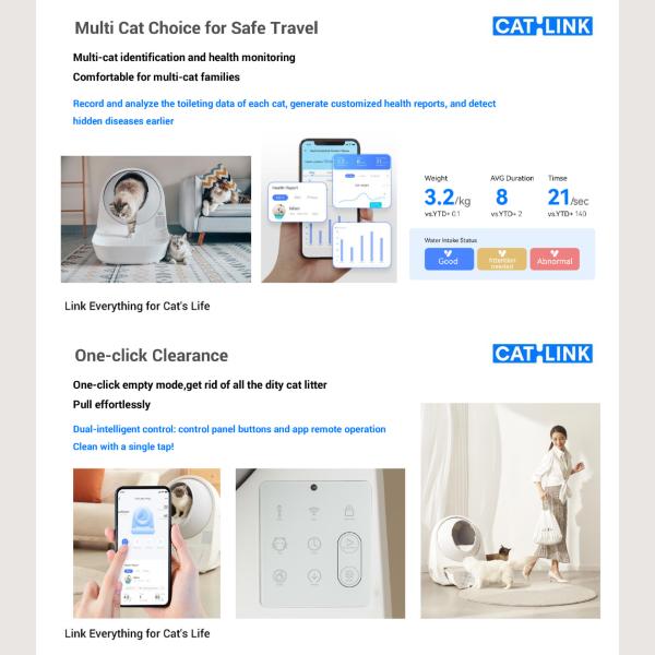 Multi-cat identification and health monitoring Comfortable for multi-cat families, Record and analyze the toileting data of each cat, generate customized health reports, and detect hidden diseases earlier.