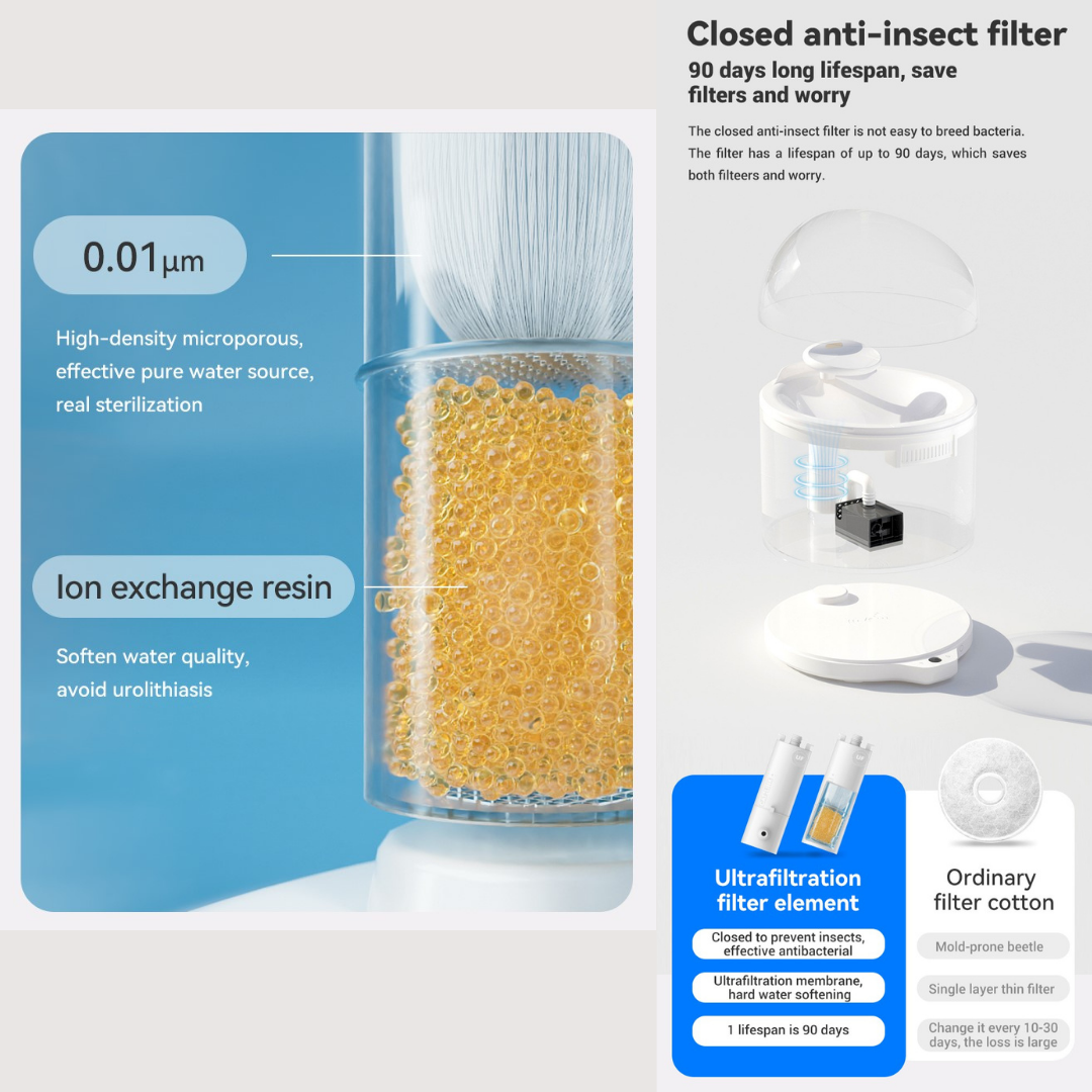 Introducing CATLINK PURE 2 Smart Pet Water Fountain is the latest water fountain today that uses state-of-the-art technology and next-generation technology to purify and ensure safe and healthier drinking water for our cats. Starting the new era of pet hydration, Catlink has developed a smarter, more innovative way of taking care of our pets, using multiple filtration methods, presents drinking water data and health reports via mobile app plus many other features that make this product an upgrade from basic filtration to being sophisticated and advance water fountain.