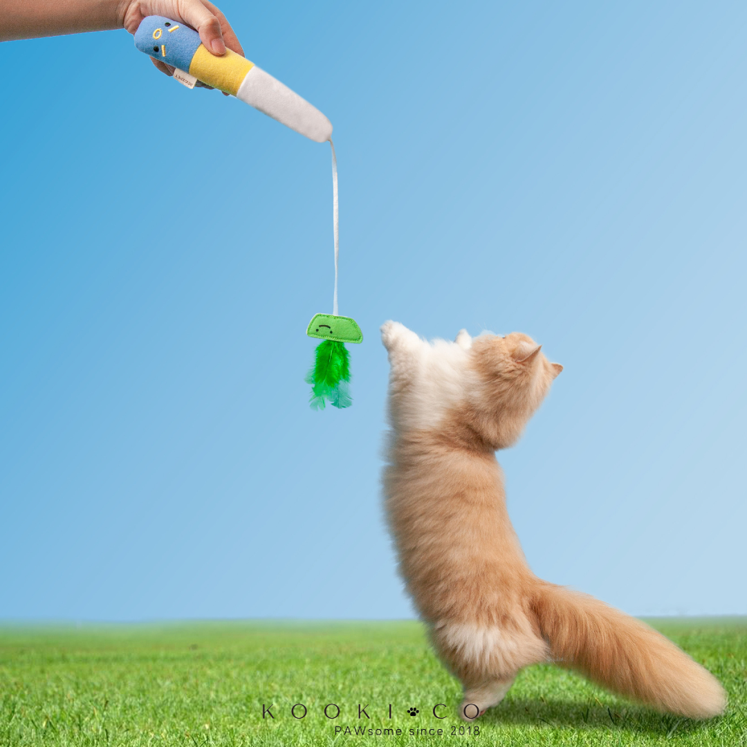 Pawrent will get 3 soft Puffer fish and 1 soft wand with feather, you can play with your lovely pet.