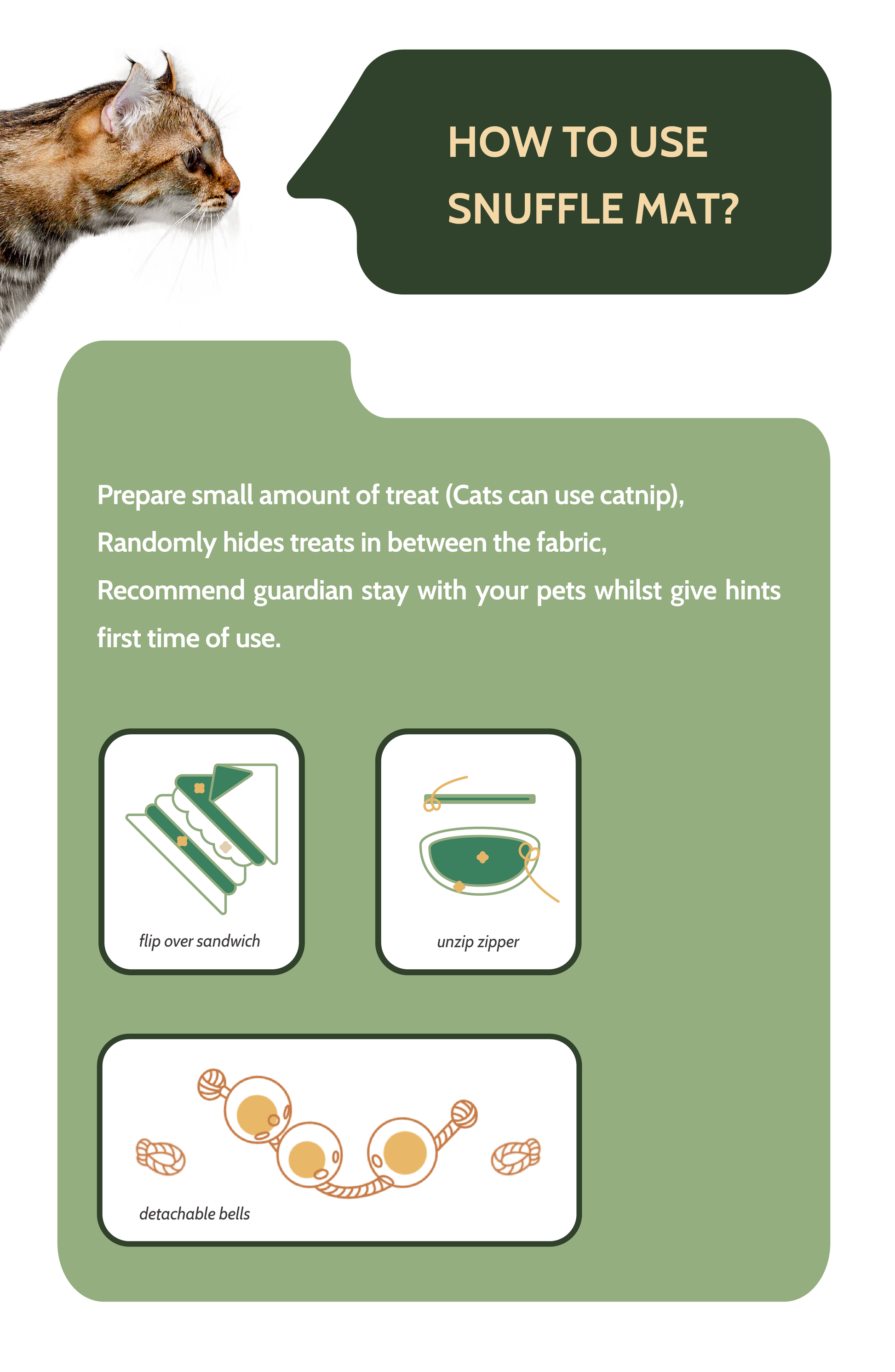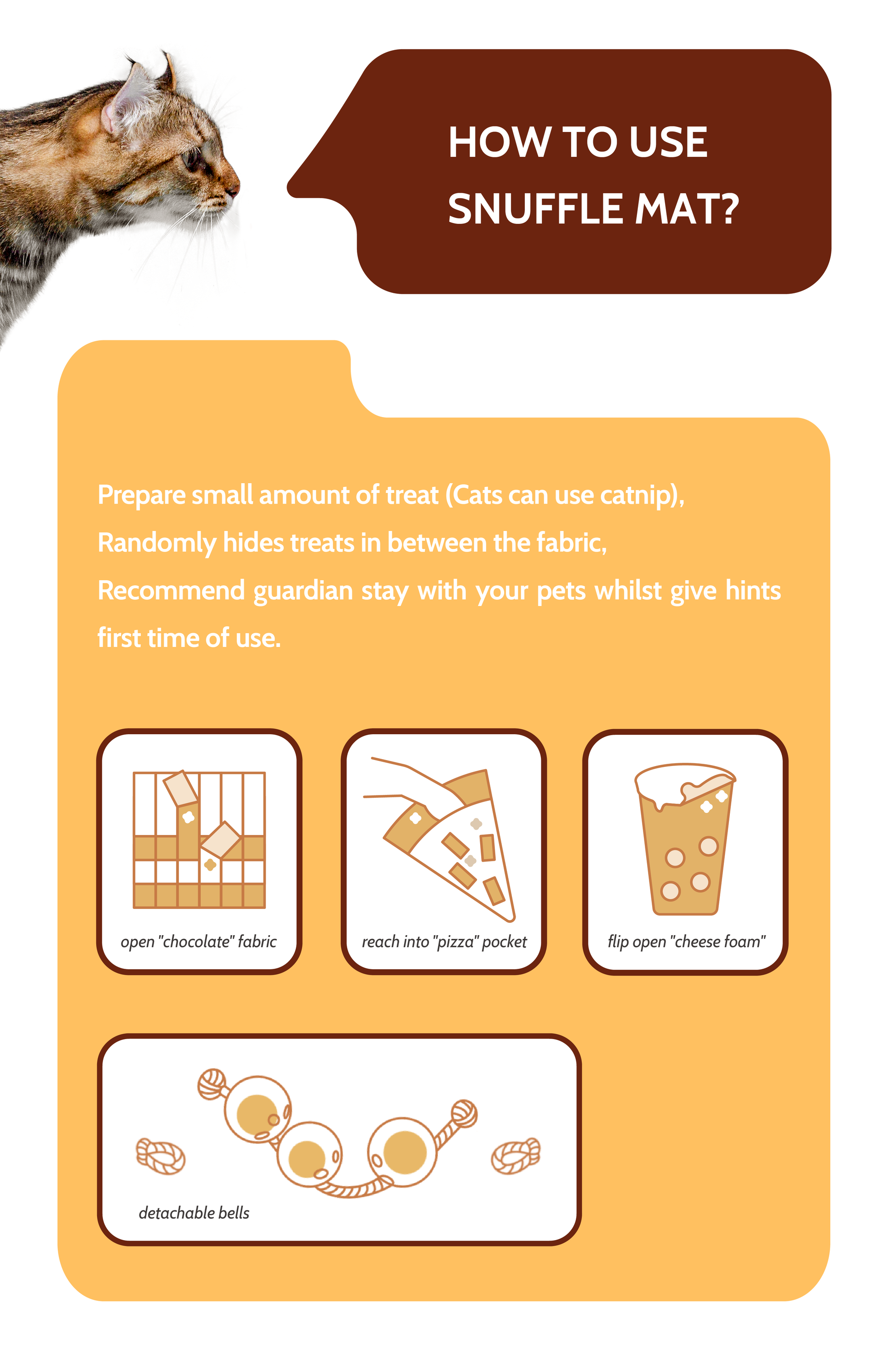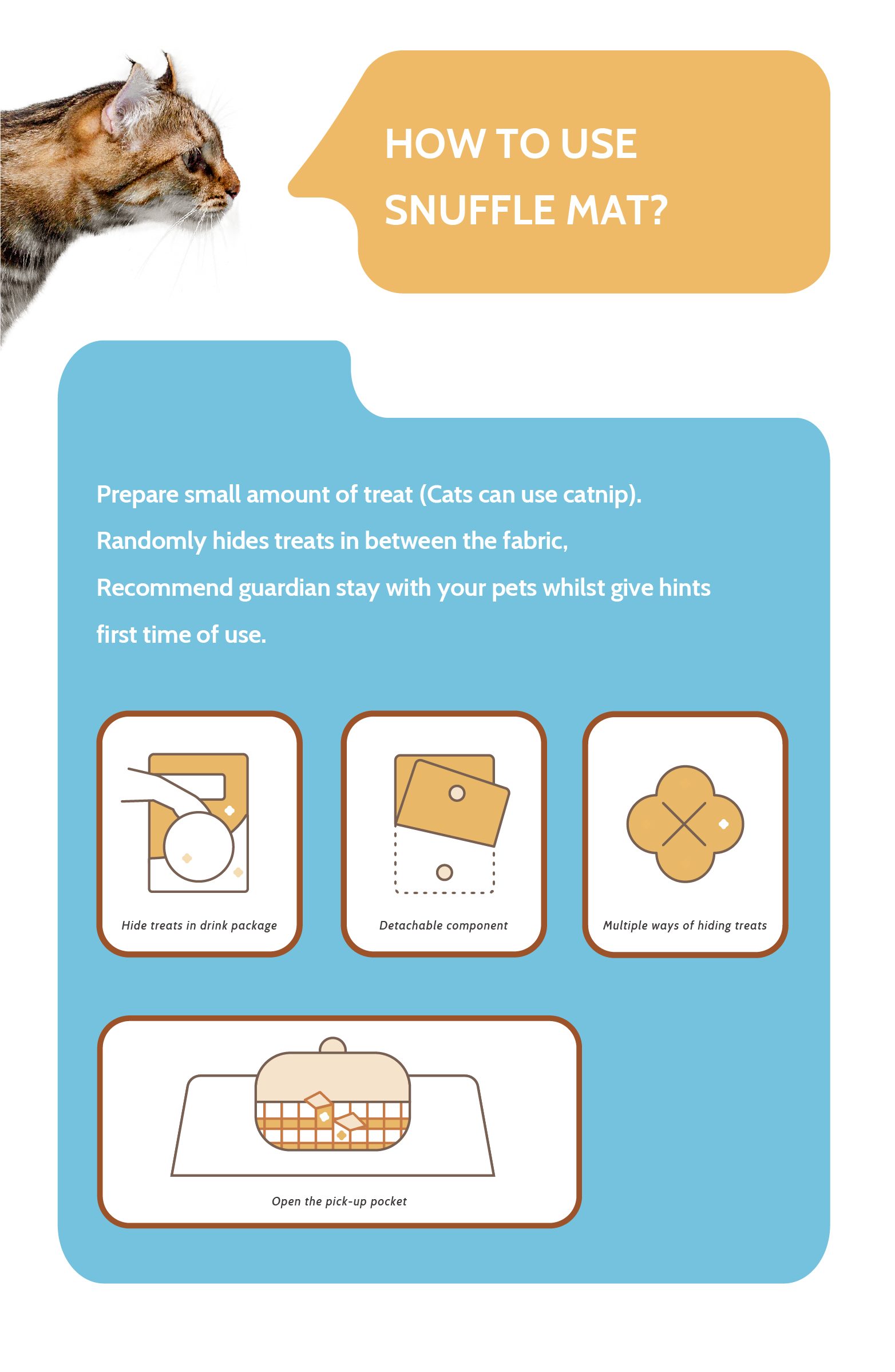Prepare small amount of treats. Randomly hides treats in between the fabric. Recommended guardian stay with your pets whilst give hints first time of use